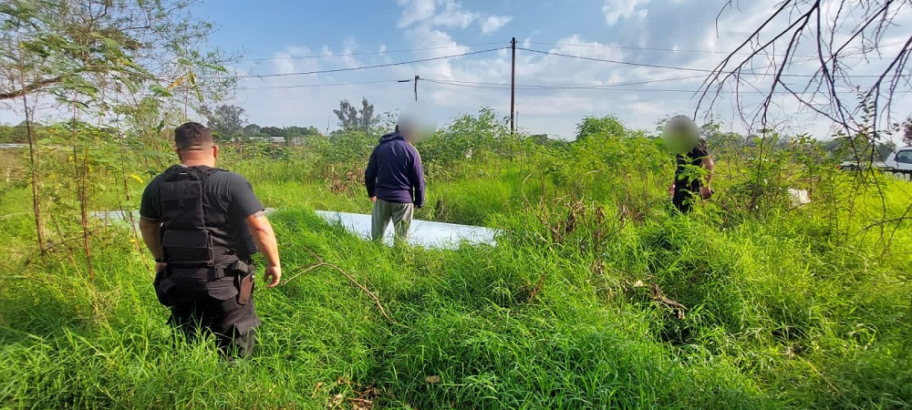 Los policías realizaban recorridas preventivas por los barrios de la jurisdicción, cuando fueron alertados por una mujer de la zona. La misma contó que dos sujetos trasladaban a pie hacia un sector de descampado los materiales mencionados. Por ello, los efectivos se dirigieron hasta el sitio, donde hallaron los elementos semi escondidos por la tupida vegetación.