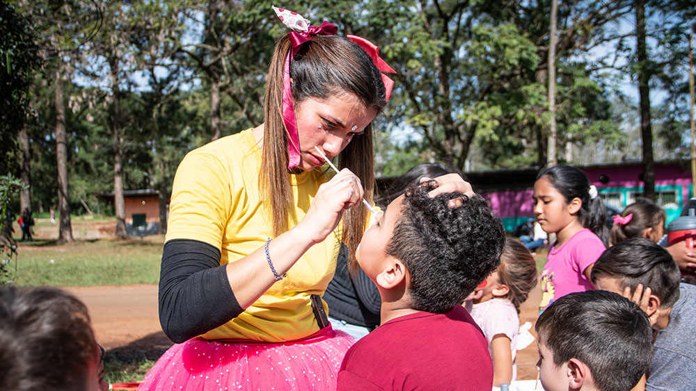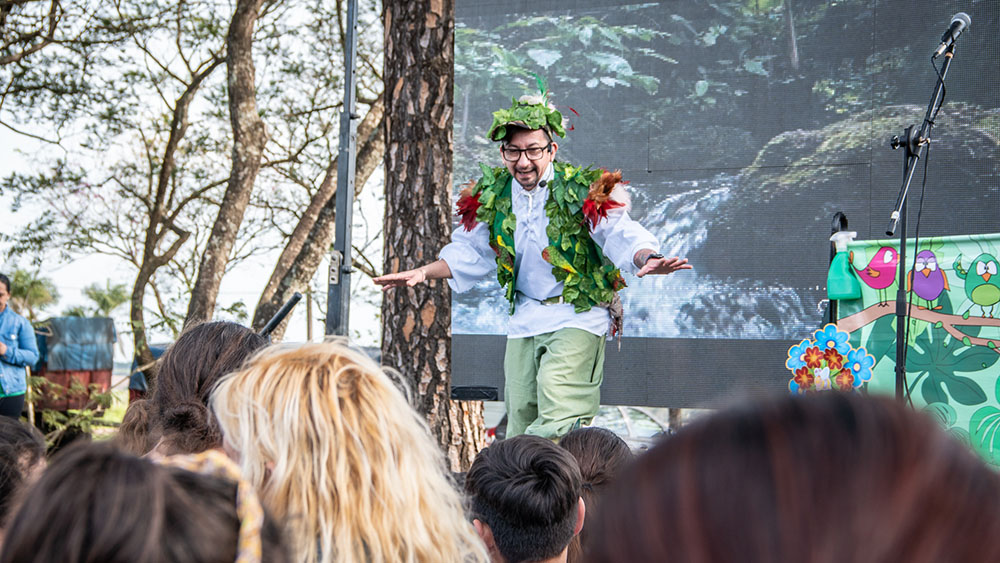 El actor Walter Bogado fue uno de los encargados de animar las tardes en las jornadas realizadas en las cocinas centralizadas de Posadas cumpliendo un rol activo en las diferentes actividades que se desarrollaron. “Estamos homenajeando, en el mes de las infancias a todos los niños de esta forma, con todo el Ministerio unido, con todos los stands trabajando a su manera”, advirtió.