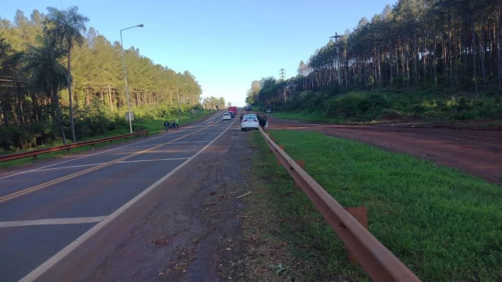 Ante esta circunstancia, el conductor del rodado mayor persiguió al motociclista hasta alcanzarlo sobre la ruta nacional 12, altura del kilómetro 1545, colisionando contra su parte trasera, provocando así que perdiera el equilibrio y cayera sobre la banquina.