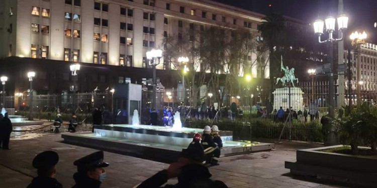 Una protesta frente a Casa Rosada terminó con la intervención de personal policial, luego de que los manifestantes comenzaran a arrojar piedras y antorchas encendidas por encima de la reja al edificio ubicado en Balcarce 50.