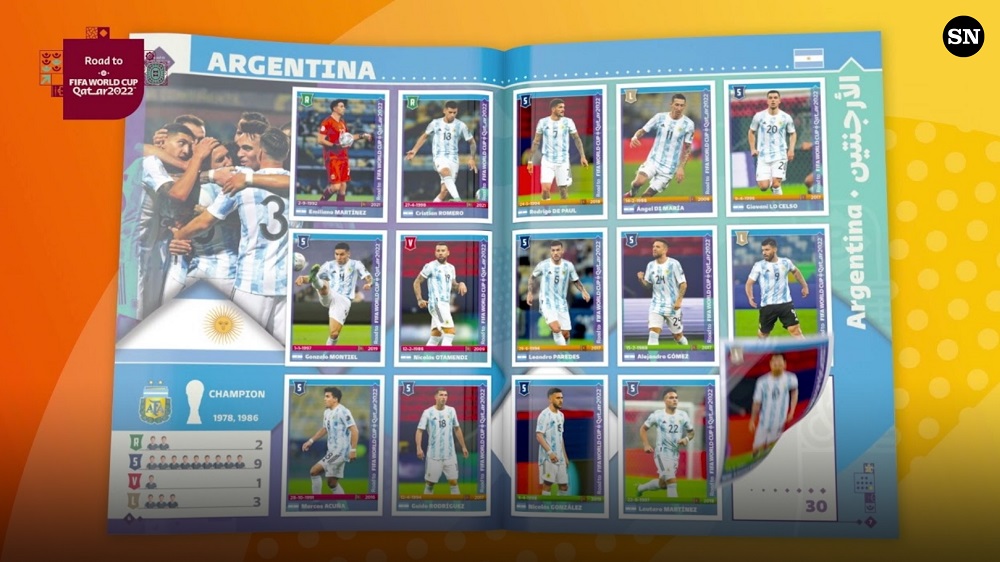 Si bien los planteles no fueron confirmados, en el álbum la Argentina tiene a los siguientes jugadores: Emiliano Martínez, Franco Armani, Marcos Acuña, Nicolás Otamendi, Germán Pezzella, Cristian Romero, Rodrigo De Paul, Leandro Paredes, Ángel Di María, Gio Lo Celso, Guido Rodríguez, Julián Álvarez, Joaquín Correa, Alejandro Papu Gómez, Lautaro Martínez y Lionel Messi.