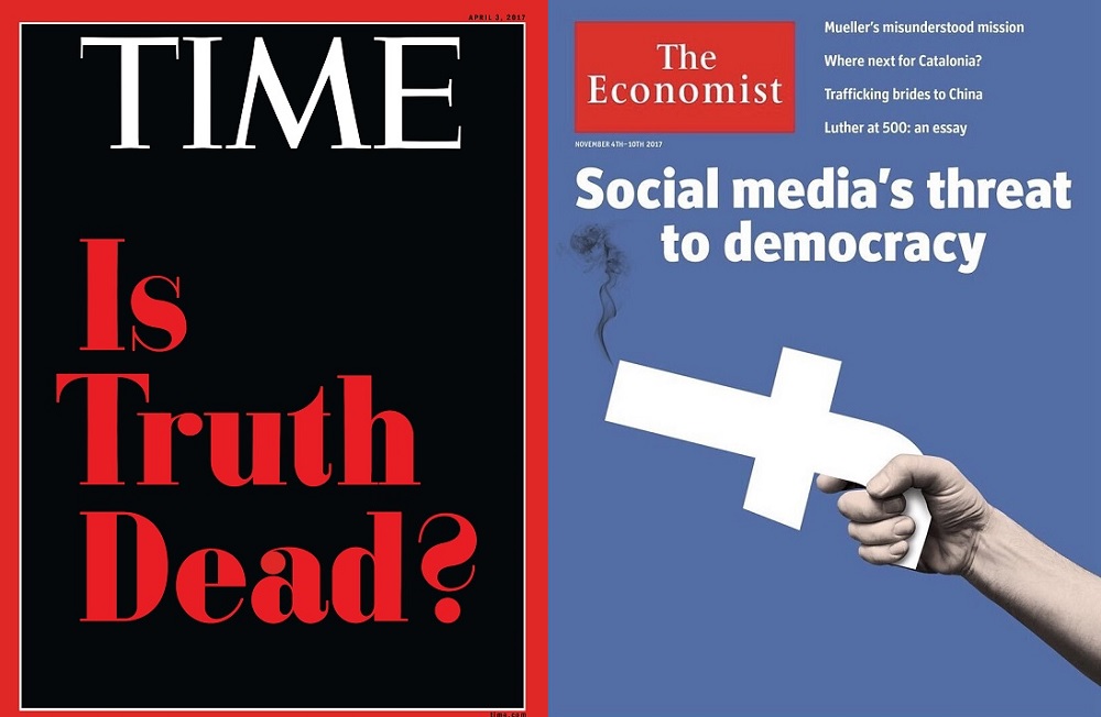 ¿Ha muerto la verdad?, se preguntaba en su icónica tapa de marzo de 2017 la revista Time. Aun antes, en 2016, The Economist titulaba también: “El arte de la mentira”, aludiendo a la creciente incidencia del engaño en el discurso público de los políticos. Y esa última revista británica se planteaba a fines de 2017 -siempre en portada- si acaso las redes sociales no amenazaban la democracia, ante su evidente poder como herramienta de manipulación masiva.