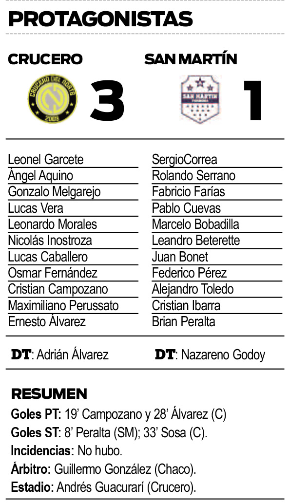 Fue una victoria importante y necesaria para Crucero, pero ahora tendrá que defender el resultado fuera de casa. El domingo a las 15.30 visitará a Defensores de Pronunciamiento, otro que necesitado de puntos.