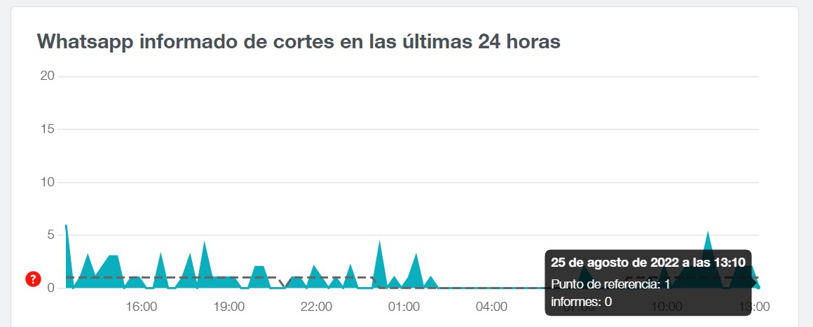 El monitor DownDetector, que se dedica a controlar e informar en tiempo real la caída e interrupciones de los servicios, proveedores, operadores de internet, detectó fallas en la aplicación de mensajería WhatsApp, que se pueden usar en el sitio web o a través de la app. Tuvo reporetes de fallas desde las 9:27 hasta pasadas las 13. En tanto que WhatsApp Bussines no tuvbo informes de fallo.