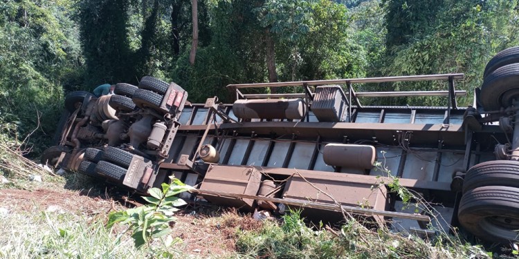 Un camión con semirremolque de patente brasileña volcó en la tarde de este jueves a la altura del kilómetro 60 de la ruta provincial 17, en cercanías a la localidad de Pozo Azul, provocando la muerte de una mujer de apellido Rodríguez quien viajaba como acompañante.