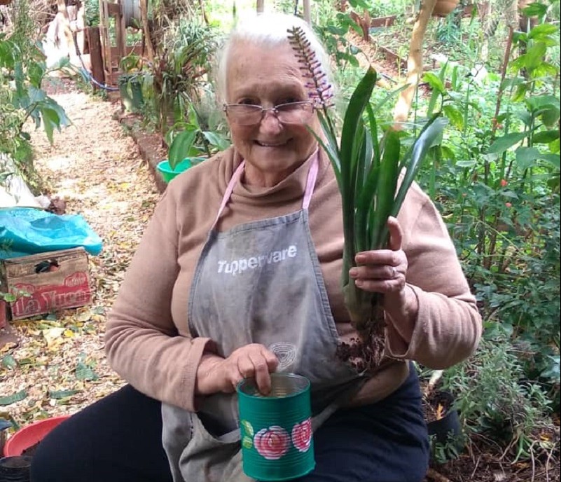 Claudia nos cuenta que María del Pilar si no está en su huerta está en su jardín, como la vemos con esa carita llena de felicidad preparándose un domingo para ir a la feria.