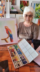 Disfrutamos de la compañía de Graciela en el taller de pintura, disfrutamos de su arte, tanto como de su compañía. Tiene mucho saber de medicina para curar el cuerpo, y ahora su saber se orienta a curar el alma.