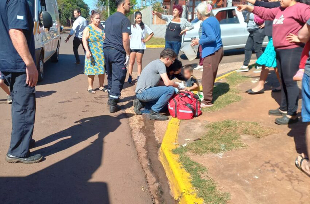 El siniestro tuvo lugar sobre la calle Juan Bautista Alberdi de Puerto Iguazú. Según informaron, una mujer de 25 años viajaba a bordo de una moto 110 cc. junto a tres niños, uno 3 años, otro de 8 años, y el menor de apenas 7 meses, cuando por razones que se desconocen despistaron.