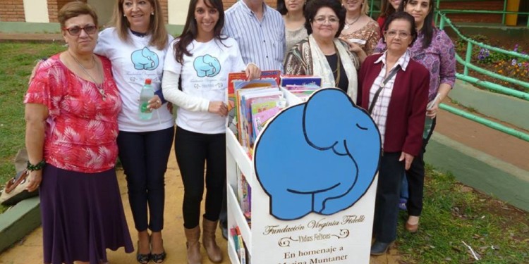 Con el agregado de que en el Bibliomóvil, más precisamente en su logo -el cual es un elefante celeste, ya que Virginia coleccionaba elefantes-, dice: “Fundación Virginia Fidelli, Vidas Felices” en Homenaje a Marina Muntaner.
