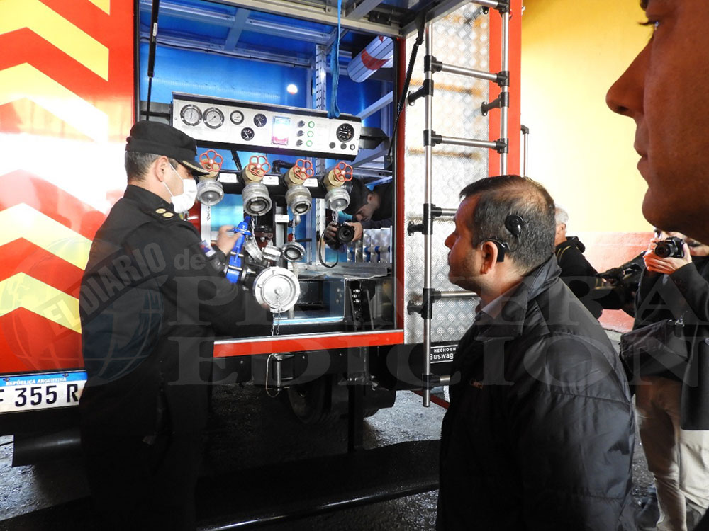 Antes de las 11 de ayer el Gobernador llegó con el legislador Hugo Passalacqua hasta el cuartel ubicado sobre la avenida Martín Fierro, donde lo esperaban el ministro de Gobierno, Marcelo Pérez y el director de Bomberos de la Policía de Misiones, Elías Chagas. Herrera Ahuad intercambió saludos protocolares y después se subió a la flamante unidad, siguiendo atentamente las explicaciones sobre el funcionamiento de la misma a cargo de Chagas.