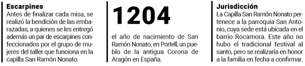 Bajo el lema “Con San Ramón, misión y profecía”, la Capilla San Ramón Nonato, de la Diócesis de Posadas, celebró ayer miércoles su fiesta patronal donde las embarazadas y parturientas se acercaron a recibir la bendición que las proteja y acompañe en cada momento.