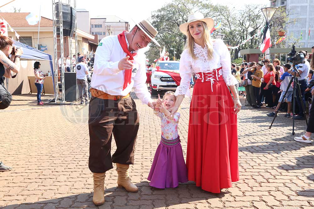 Claudia Molas, Paisana Argentina del Centro Cultural de la ciudad, abrió el camino, acompañada por las Paisanas de Oberá y de Misiones, representando el rol de anfitriona, como dueña de la tierra que abrazó a quienes eligieron y siguen eligiendo estas latitudes para vivir.
