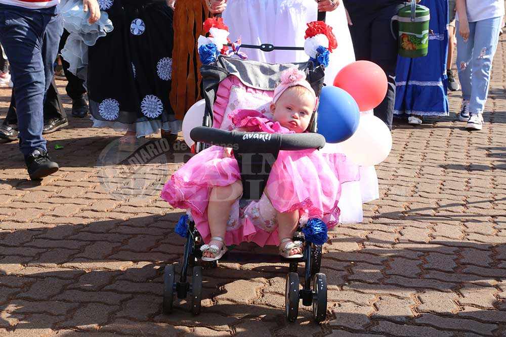 El Centro Cultural Argentino de Oberá, tuvo a su cargo el cierre. Paisanas y gauchos de distintas edades, reafirmaron el compromiso con las costumbres y tradiciones del país. Los grupos infantiles, juveniles y adultos del Ballet Difundiendo lo Nuestro, coparon el camino, tiñéndolo color celeste y blanco.