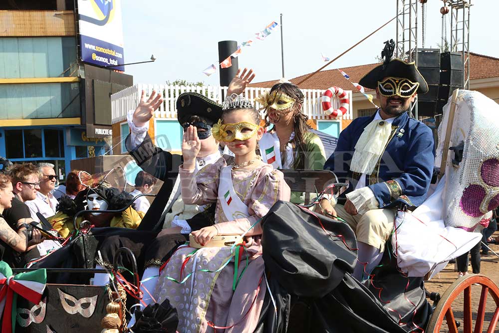 Al frente de las representaciones de los países, pasaron la actual reina nacional del inmigrante, Karen Da Silva, la primera princesa Dana Moniec y la segunda, Sol Rivero. “Estoy emocionada, feliz, ya estamos de fiesta”, expresó la soberana. Su colectividad, la brasileña, fue la primera en pasar por el palco principal, donde permanecían las autoridades comunales e invitados, junto a integrantes de la comisión organizadora.