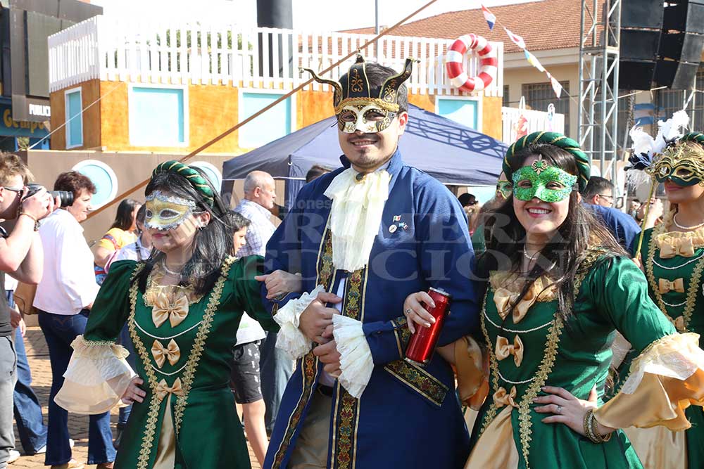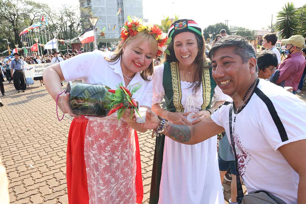 Algunas colectividades invitaron bebidas y comidas típicas a su paso, como los brasileños que ofrecían caipirinha y pipoca, los alemanes el frío chopp o los ucranianos el pan. Los carros, carrozas o autos ornamentados, llevaron a los más chicos, que en esta edición fueron los más numerosos, también a los adultos mayores.