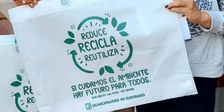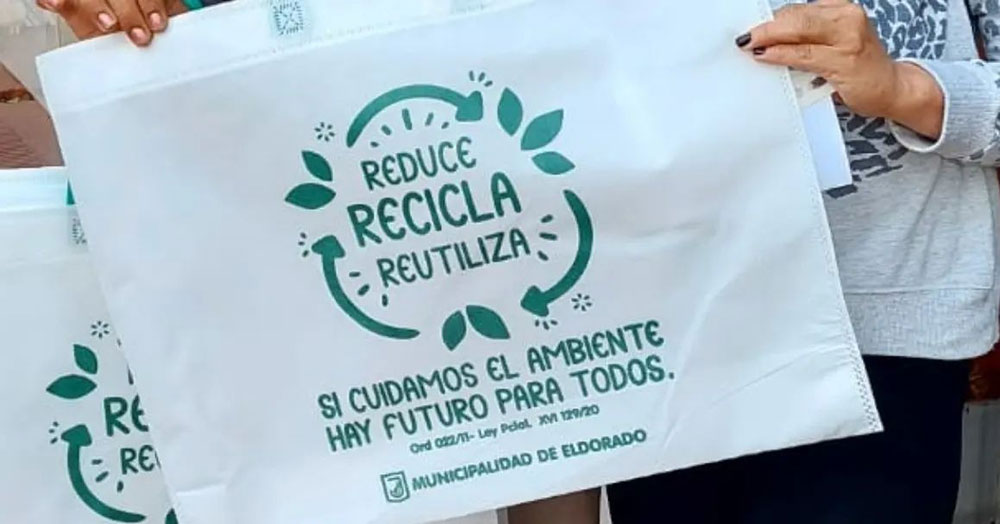 La Municipalidad de Eldorado lleva adelante una campaña intensiva, en distintos puntos de la ciudad, para que se deje de utilizar las bolsitas de polietileno, tipo camiseta, para lo que implementa la entrega de bolsas reutilizables a los vecinos. Esto en consonancia con la puesta en vigencia de la Ley Provincial 16129 del 2020 y con la Ordenanza local 22 del 2011.