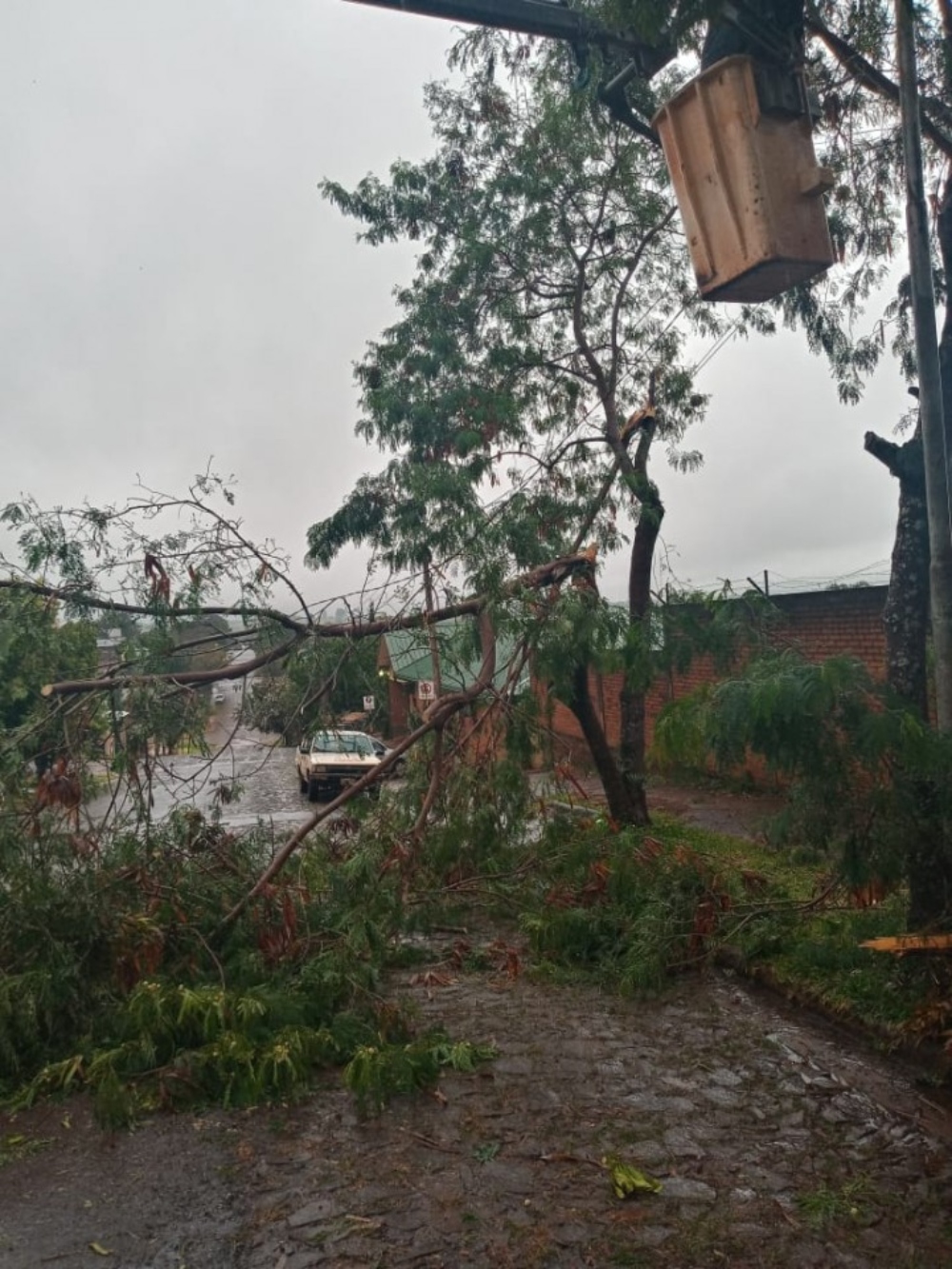 La fuerte tormenta del jueves por la noche dejó destrozos, voladuras de techos, ramas y postes en buena parte de la provincia. Hasta la primera noche de la Fiesta Nacional del Inmigrante en Oberá debió terminar a las 23 ya que el viento y la lluvia golpearon fuerte e hicieron estragos en el escenario mayor e incluso, según el comunicado de la CELO, hasta ayer por la tarde seguían trabajando para restablecer el servicio de energía que se vio afectado por la caída de postes.