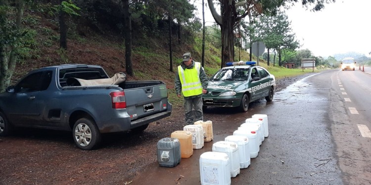 También ayer, y en el mismo barrio, los efectivos del mencionado escuadrón incautaron otro importante número de bidones, que en este contenían 145 litros de nafta y 80 de gasoil, los cuales estaban siendo transportados ocultos en la parte trasera de una vehículo Chevrolet Montana, y cuyo conductor, un ciudadano argentino, trataba de transportar los bidones de manera ilegal hacia Brasil. En este caso, el avaluó estimado de la carga recuperada llegó a los 26.600 pesos.