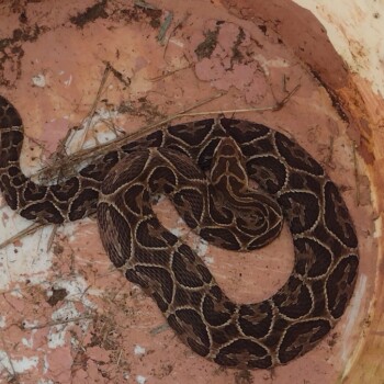 Este domingo en horas de la siesta, la Dirección de Defensa Ambiental de la Policía de Misiones fue alertada por un vecino del barrio Itaembé Guazú de Posadas, de la presencia de una víbora en un domicilio particular en construcción a la altura de las calles Jacinto y Las Nutrias.