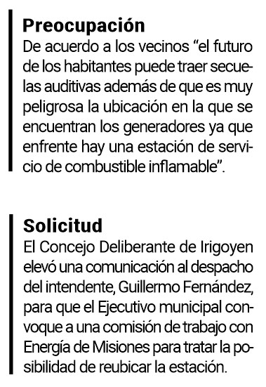 Vecinos del barrio Sarmiento de Bernardo de Irigoyen solicitaron mediante notas, al Concejo Deliberante y Ejecutivo municipal la reubicación de una estación eléctrica aledaña ya que según advirtieron “afecta de manera directa a la salud auditiva y emocional de los vecinos que constantemente sufren de ruidos molestos”.