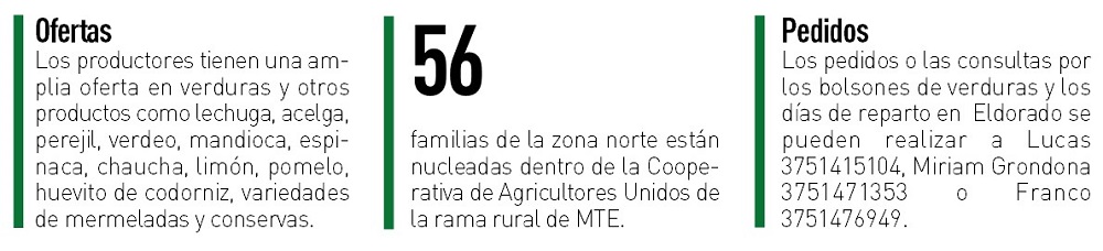 En cuanto a las ventas, la agricultora deslizó que “los bolsones los hacemos cada 15 días y tenemos entre 100 y 150 pedidos sólo en Eldorado”.