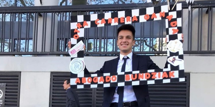 Una de las “joyas” del automovilismo misionero y nacional, Rudi Bundziak, se recibió este martes de abogado, a sus 23 años. El logró universitario lo alcanzó en la UADE en Capital Federal y lo festejó de la misma manera que lo celebra en el podio, con mucha alegría y emoción.