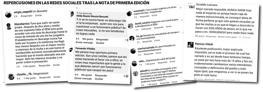 Siguen las repercusiones tras la nota de ayer de PRIMERA EDICIÓN, donde se expuso la falta de garantía de defensa de los vecinos que son multados o considerados infractores por la Municipalidad de Posadas. En especial, el atraso de la comuna en la agilización del Tribunal, que exige trámites personales, no notifica las causas y las personas se sorprenden de las condenas cuando intentan realizar trámites como un libre deuda o sacar el carnet de conducir.