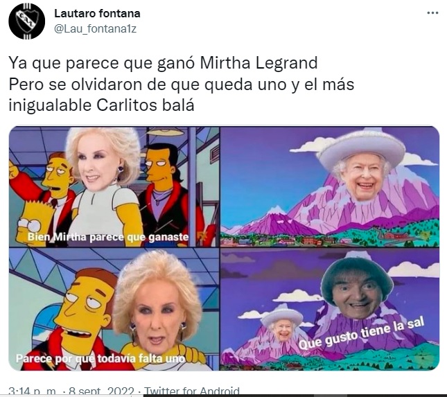 Y dejen de poner a Mirtha como potencial ganadora…el único héroe aquí es el Sr. Carlitos Balá pic.twitter.com/8cEsBVtXA3
