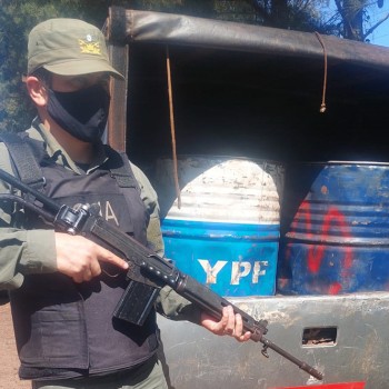 En la caja de la camioneta los gendarmes detectaron bidones (80 x 5 lts y 30 x 2 lts) y botellas (44 x 900 cc) de aceite de oliva; y frascos de 1 kilo 600 gramos de variedades de aceitunas (64 de rellenas, 15 de feteadas, 47 de descarozadas y 44 con carozo) sin documentación legal.