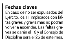 Según precisó, “el próximo lunes 19 del corriente, voy a imponer las penas graves, que son para cuatro miembros quienes sí se desprenden de la causa y que tuvieron alguna intervención gravitante en acciones que no están remarcadas en las leyes y reglamentos militares. Son claras faltas disciplinarias, pero no tuvieron una acción gravitante en el momento en que Verón se lesione de esta manera”.