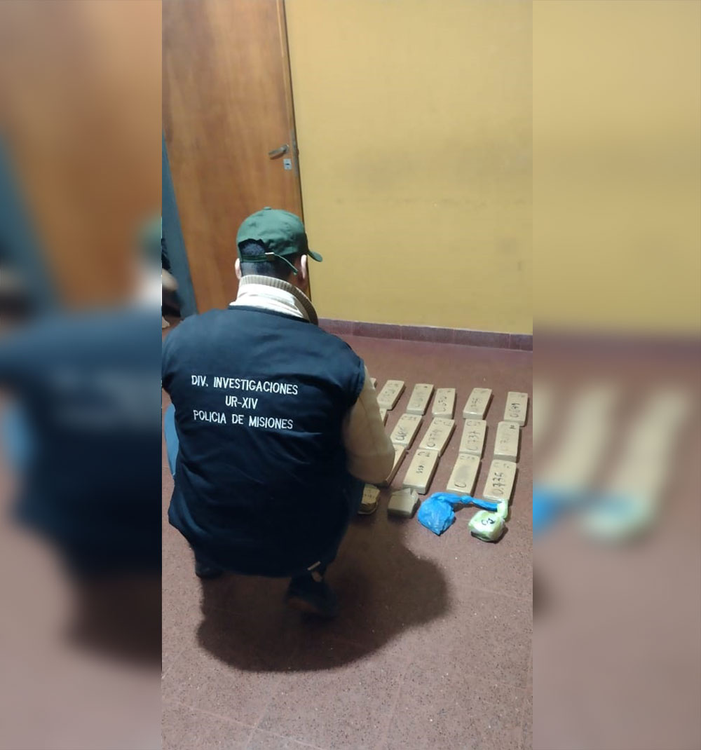 Con orden de la Justicia local, uniformados requisaron el inmueble y hallaron 18 ladrillos prensados con una sustancia que resultó ser marihuana con un peso de 14,483 kilogramos y además un envoltorio que contenía poco más de un gramo de cocaína, todo para la venta al menudeo. También incautaron una balanza de precisión y otros elementos, consignaron fuentes del caso.