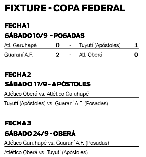 La segunda fecha tendrá lugar el próximo sábado y esta vez el escenario será el estadio General Manuel Belgrano de Apóstoles. Los cruces será entre Atlético Oberá vs. Atlético Garuhapé y Tuyutí vs. Guaraní.