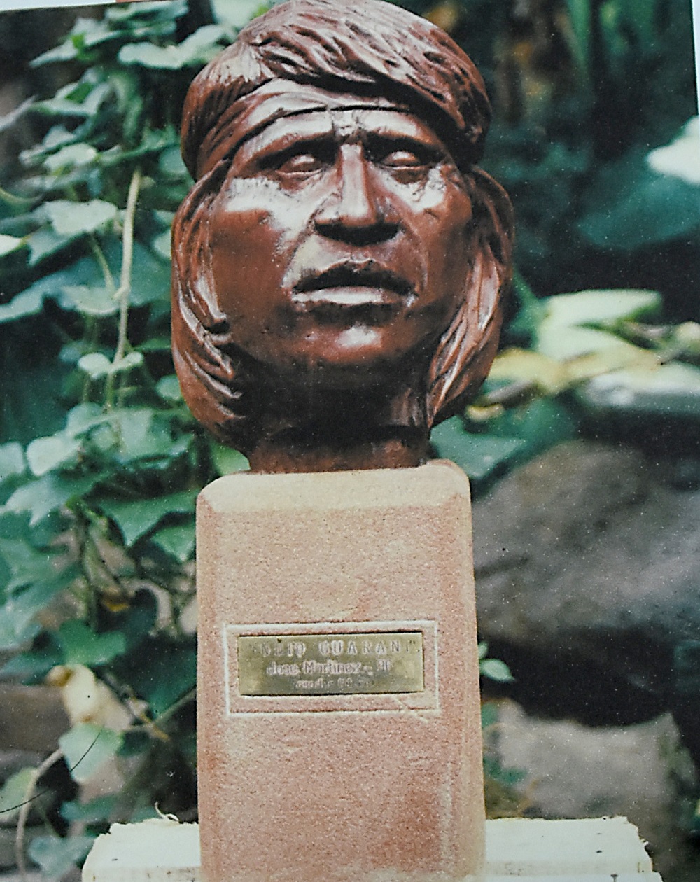 Para hacer la escultura de Andresito, pidió a un aborigen mbya guaraní, de una aldea de San Ignacio, que hiciera de modelo. “Estuvo todo el día sentado en un banco mientras yo daba forma a la arcilla. Quiero mucho a esa escultura. Su rostro me salió exacto. Lo encontré en la plaza el año pasado, y vino a saludarme. Lamento no haber traído aquí al cacique Lorenzo “Geniolito” Benítez”.