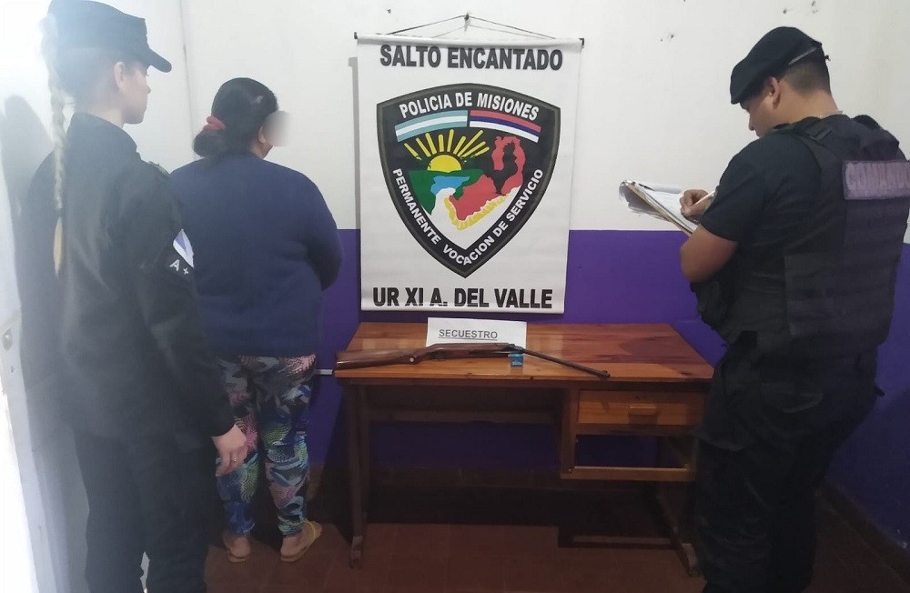 Acto seguido, los efectivos llegaron al Paraje Picada Libertad donde arrestaron a la acusada y secuestraron un rifle marca Himpa calibre 5.5 mm junto a una caja de municiones.