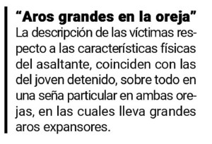 Las víctimas manifestaron que el sospechoso tenía aros expansores grandes en ambas orejas y tatuajes en varias partes del cuerpo.