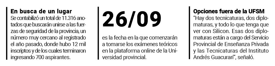 De esta manera se contabilizó un total de 11.316 anotados que buscarán unirse a las fuerzas de seguridad de la provincia, un número muy cercado al registrado el año pasado, donde hubo 12 mil inscriptos y de los cuales terminaron ingresando 700 aspirantes.