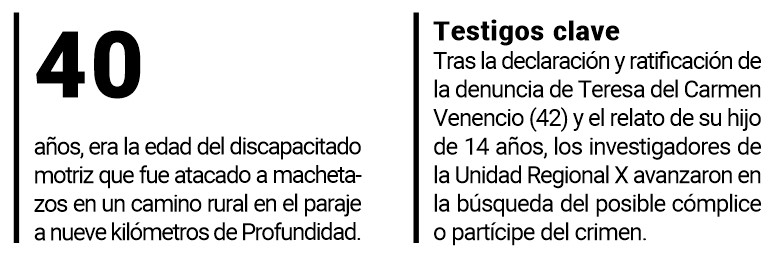 El menor apuntó que vio cerca de la escena del ataque a un hombre a caballo y que ambos en el animal habrían seguido a Da Rosa cuando se dirigía con sus muletas (tenía amputada la pierna izquierda) hacia la vivienda de Venencio con bolsas de mercaderías.