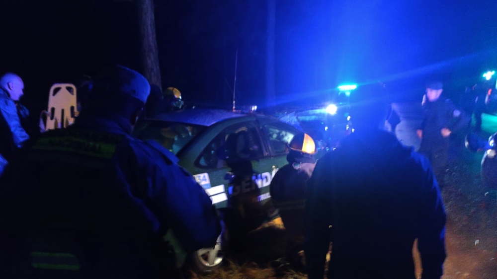 El siniestro vial ocurrió minutos antes de la 2 de esta madrugada en la arteria mencionada cuando un Ford Focus, conducido por un sargento de 45 años, quien iba acompañado por un cabo y dos subalferez, domiciliados en Oberá, despistó e impactó contra un pino a la vera de la ruta.