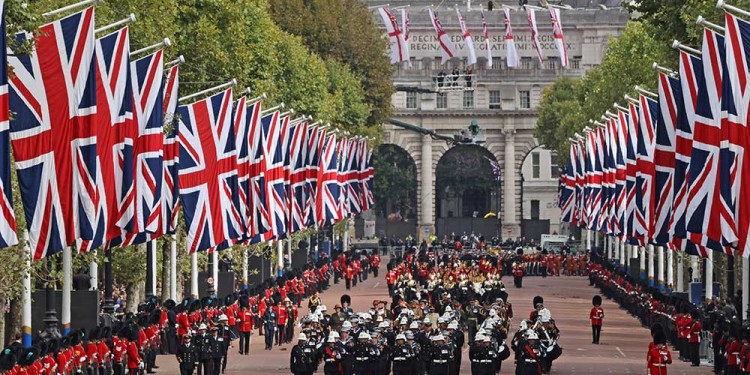 Caminaron al ritmo de la música fúnebre de las bandas de música, mientras de fondo el famoso Big Ben de la ciudad daba las campanadas cada minuto. El rey Carlos y otros miembros de la realeza les siguieron a pie.