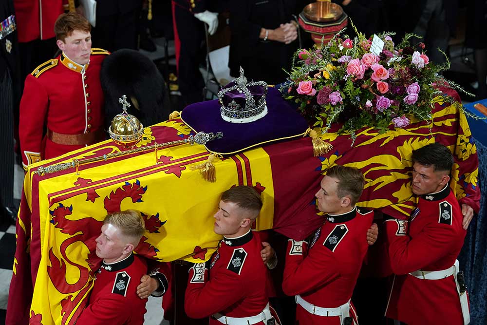 La ceremonia concluyó con el retiro del ataúd de la corona, el orbe y el cetro -símbolos del poder y el gobierno de la monarca-, y su colocación en el altar.