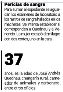 Tal como lo adelantó PRIMERA EDICIÓN, la sospecha para la investigación sobre este supuesto amigo de Quednau involucrado en el crimen de Da Rosa y en la “tentativa de femicidio” de Venencio, surgió del relato de un adolescente de 14 años, hijo de la pareja de Da Rosa, con quien escapó de milagro de los machetazos porque corrieron hasta una carbonería a pedir auxilio.