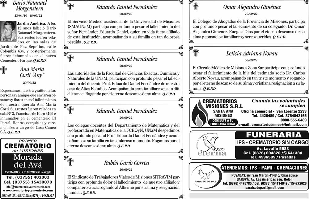 Fúnebres del Miércoles 21 de Septiembre de 2022