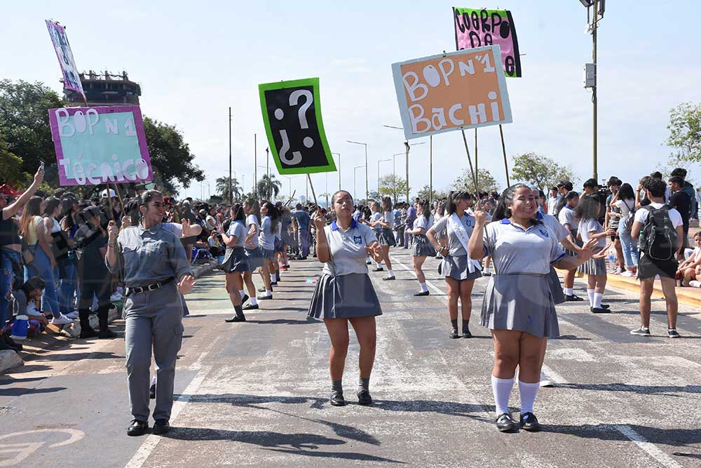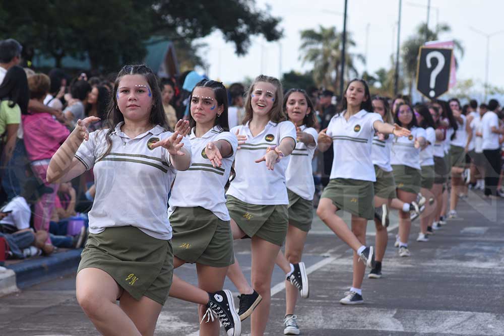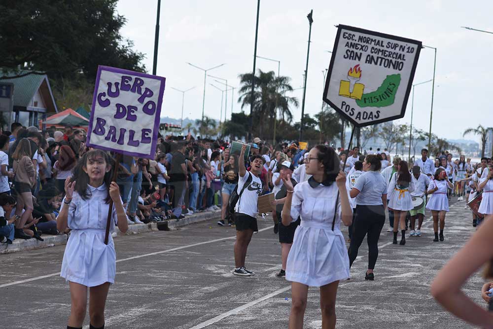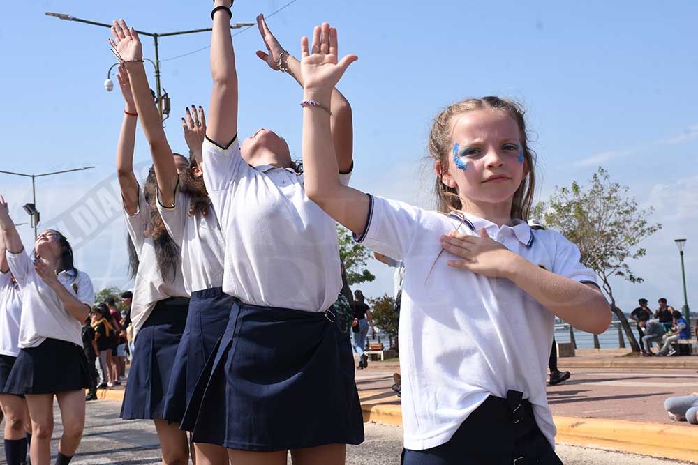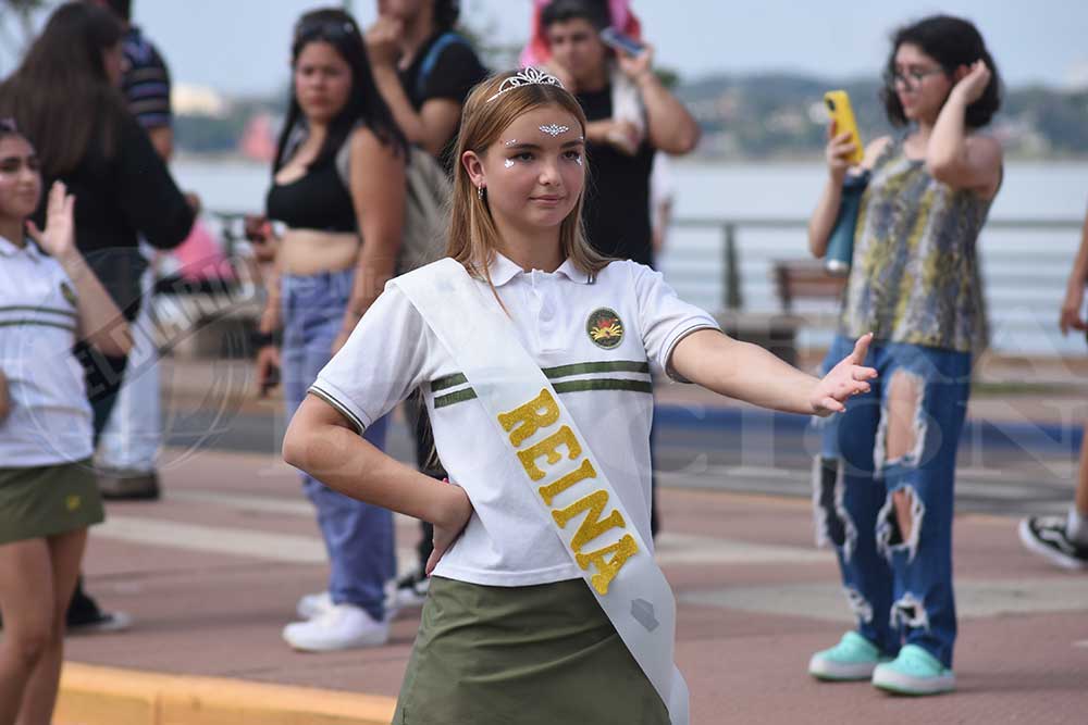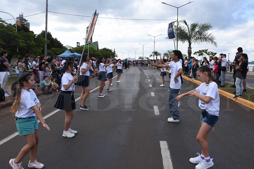La jornada arrancó cerca del mediodía con un sol a pleno y cuyo brillo encendió la alegría de los estudiantes que comenzaban a desplegar todo el ritmo, la alegría y el encanto, sobre la avenida ubicada frente al río Paraná, en una de las postales más esperadas de la capital provincial.