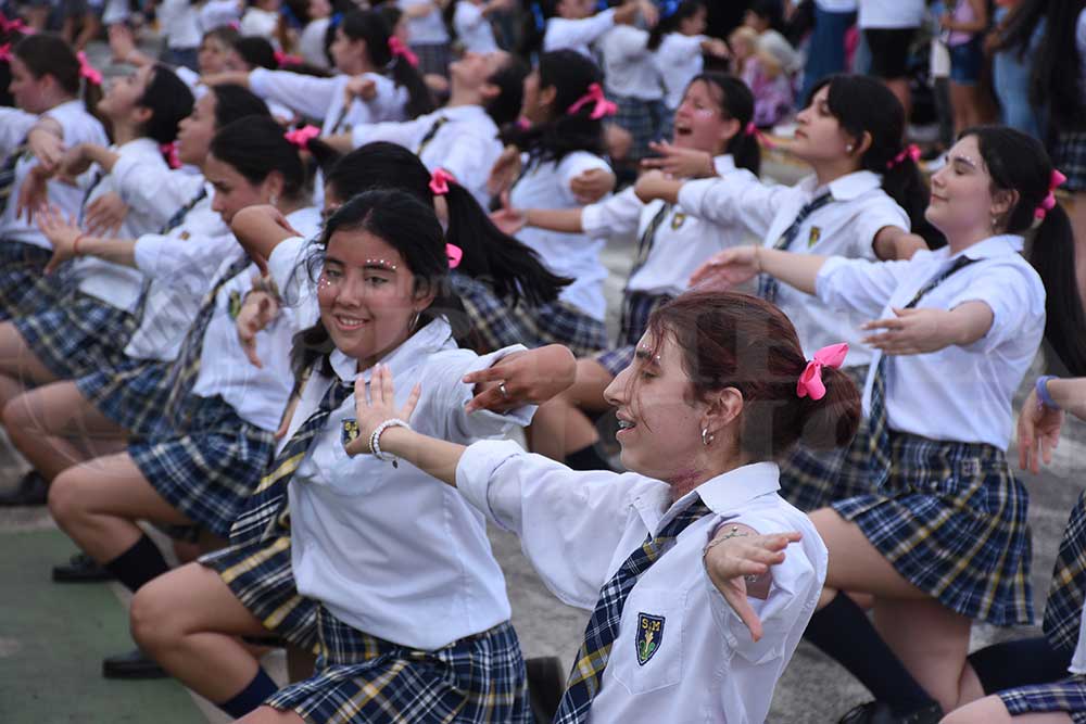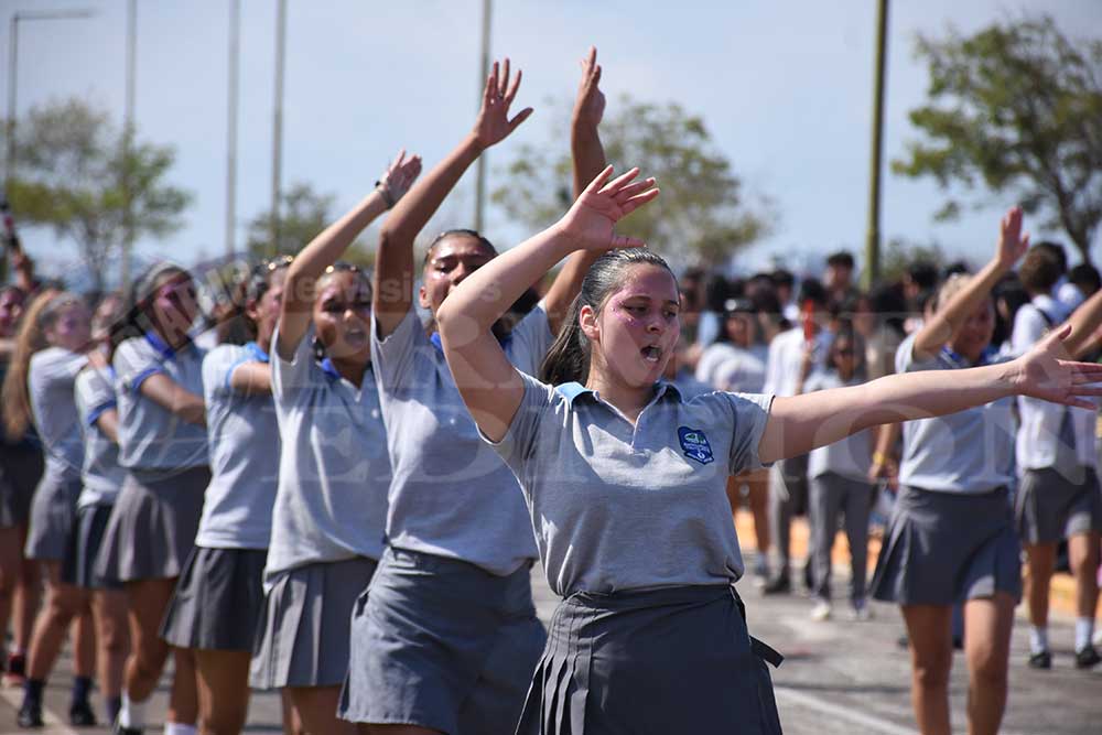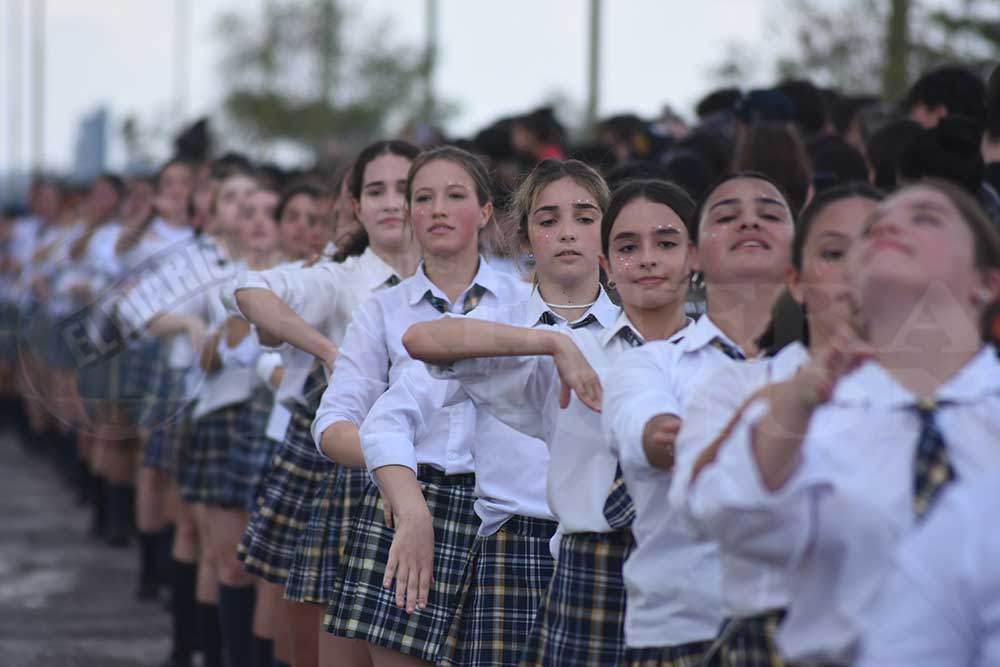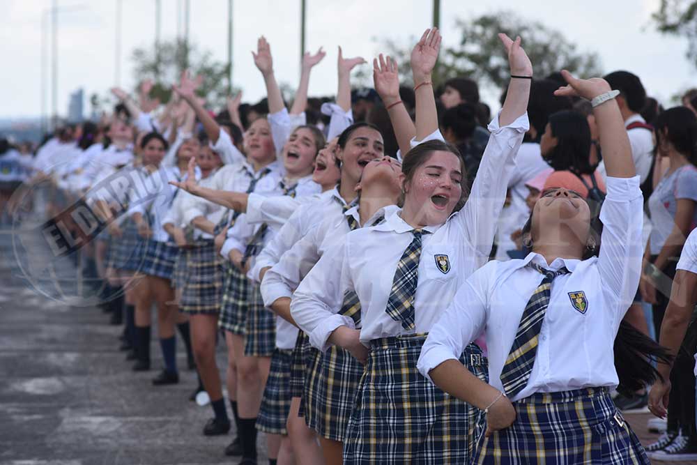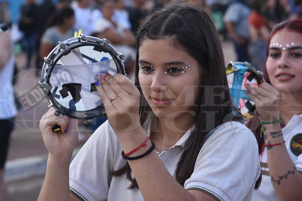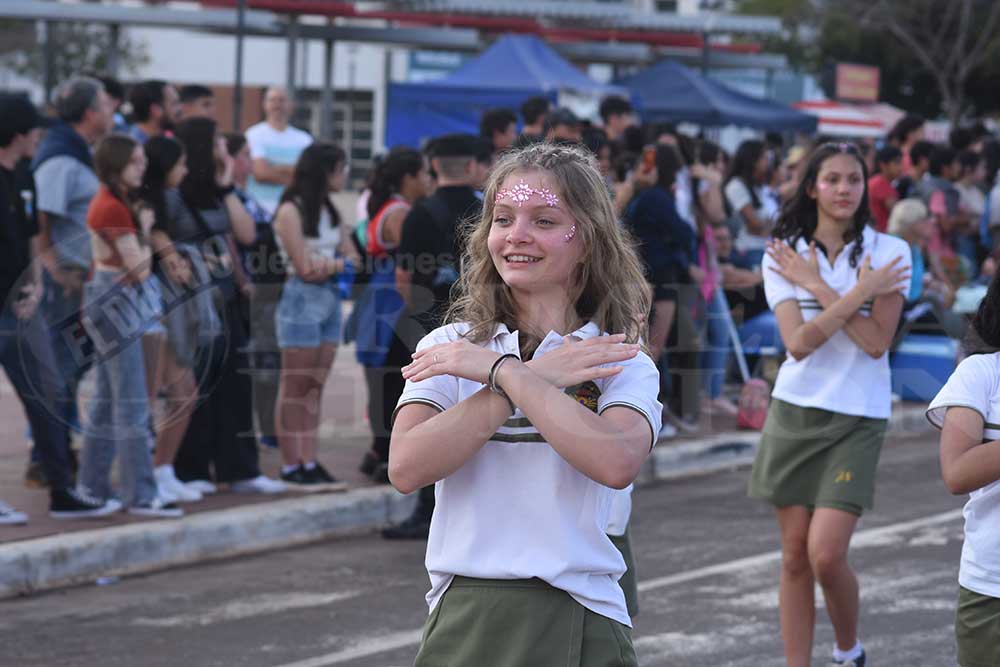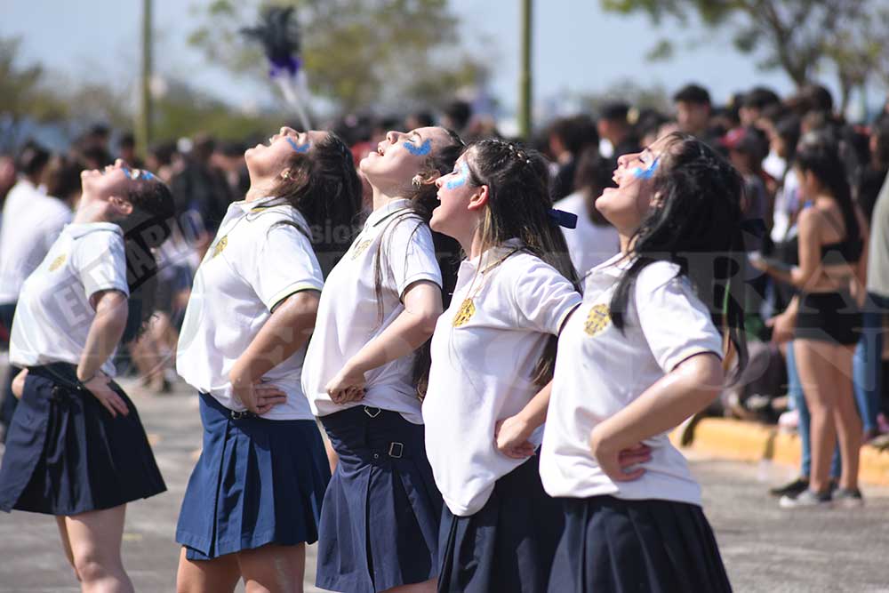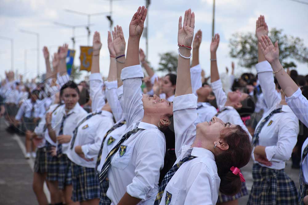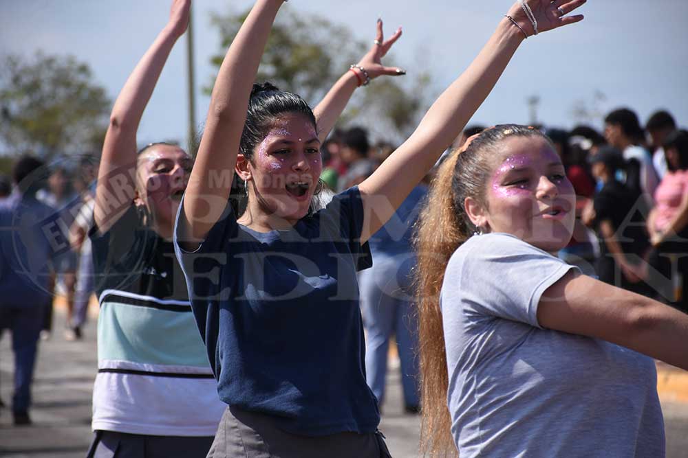 Mientras que a ambos lados de la pista numerosos jóvenes y padres con sillones, termolares y botellas de agua en mano, alentaban el paso de los colegios compartiendo el entusiasmo en un ambiente de encuentro y amistad.