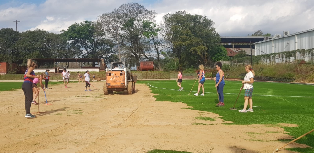 Además, colaboraron con el esparcimiento de la arena en toda la cancha, un requisito fundamental para la durabilidad del césped sintético.