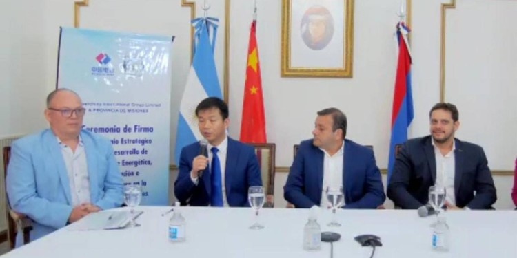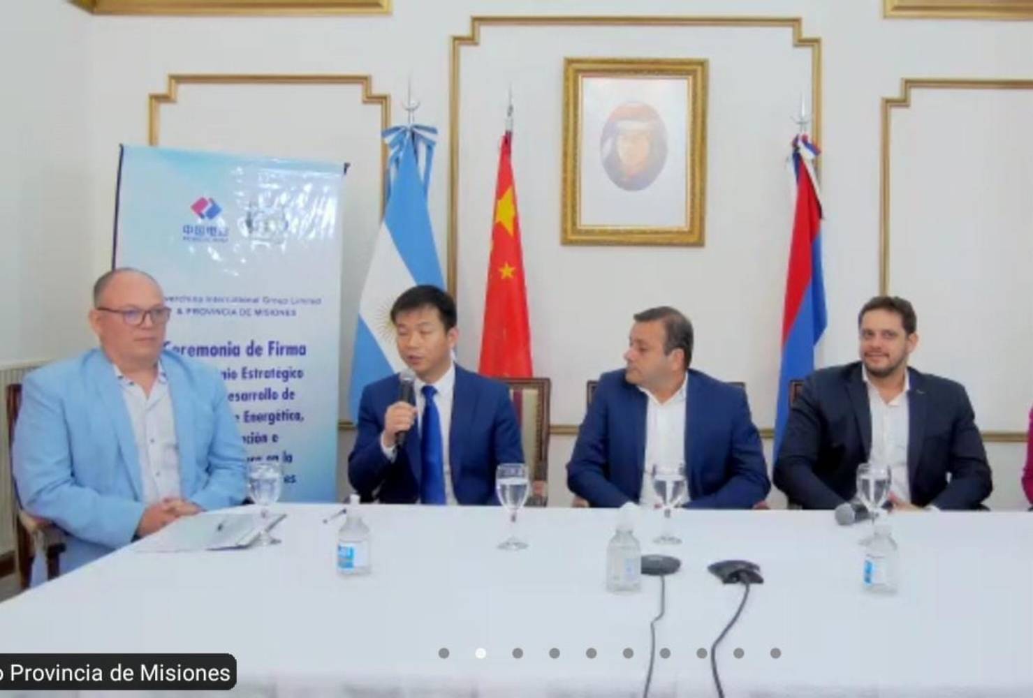 El gobernador Oscar Herrera Ahuad junto al representante legal de Powerchina en Argentina, Tu Shuipin, rubricaron el estratégico convenio para el inicio de la importante obra que se convertirá en el tercer parque solar de Misiones, de los siete que están proyectados.