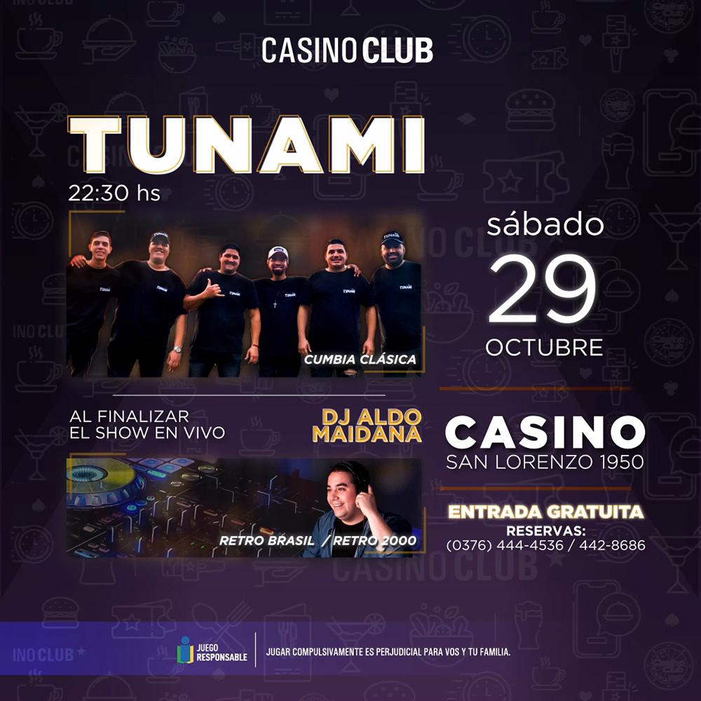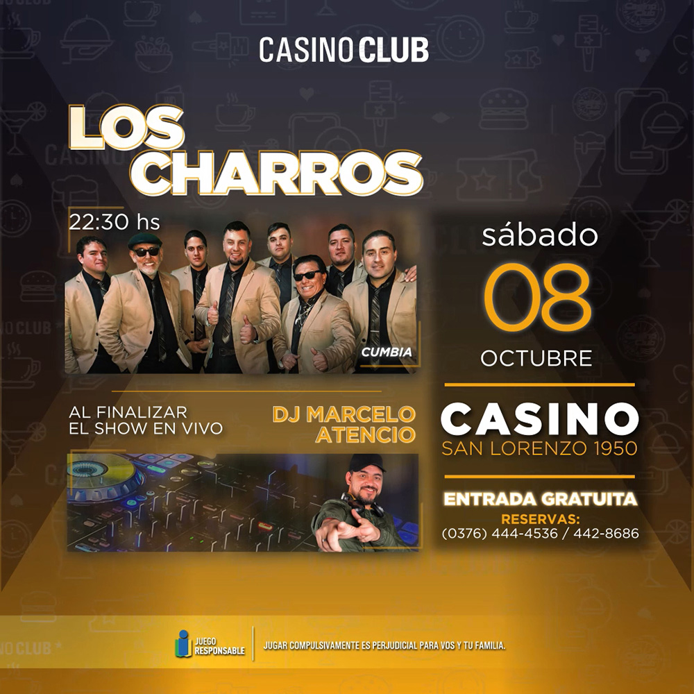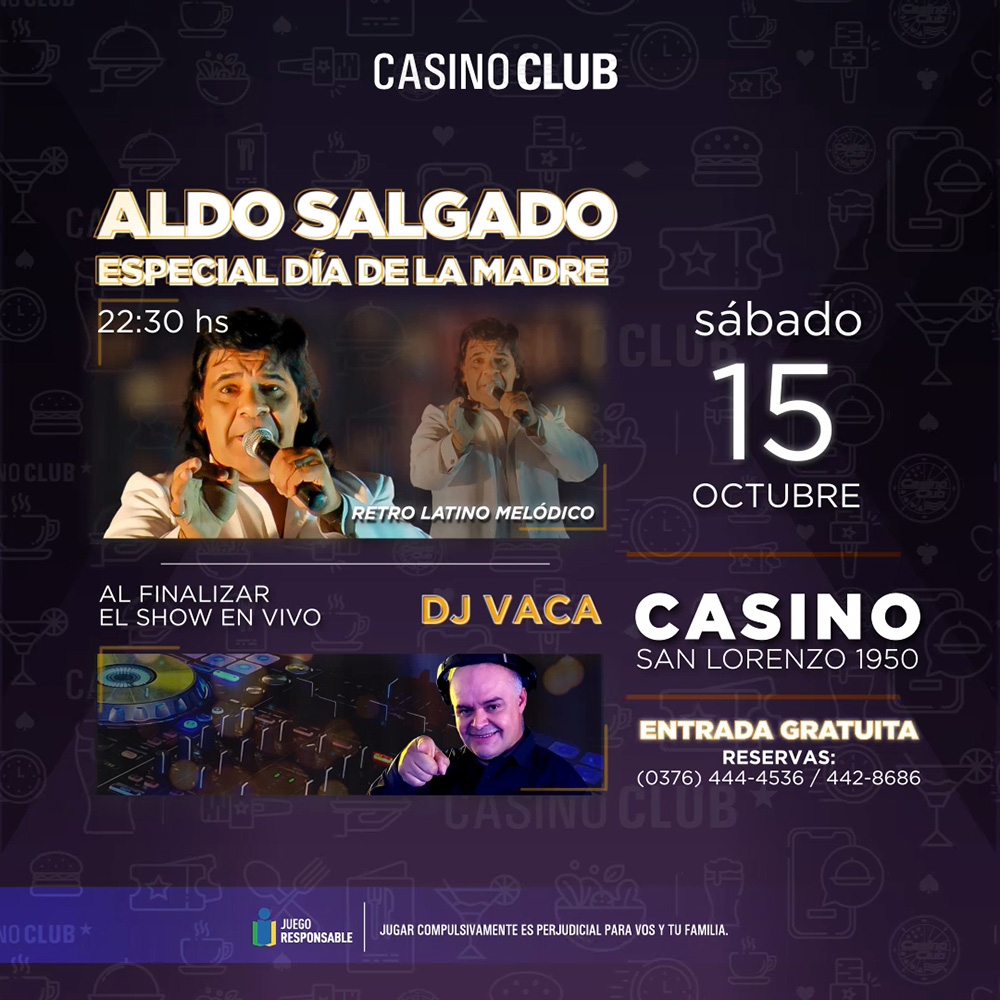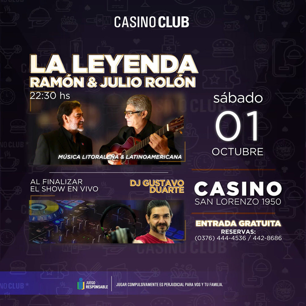 Durante todo octubre, el Casino Club de Posadas ofrecerá cada sábado una propuesta artística musical con músicos en vivo desde las 22.30, y al término de cada show, la presencia de un Dj del momento para alegrar la pista de baile. Cada uno de los encuentros será con entrada libre y gratuita.