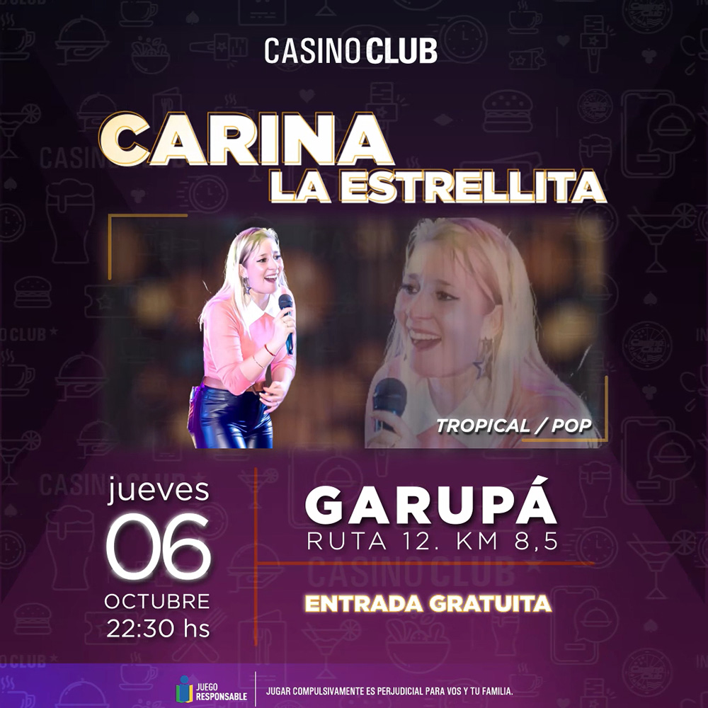 Casino Club Garupá – Jueves 6 desde las 22.30 – Carina “La Estrellita”
