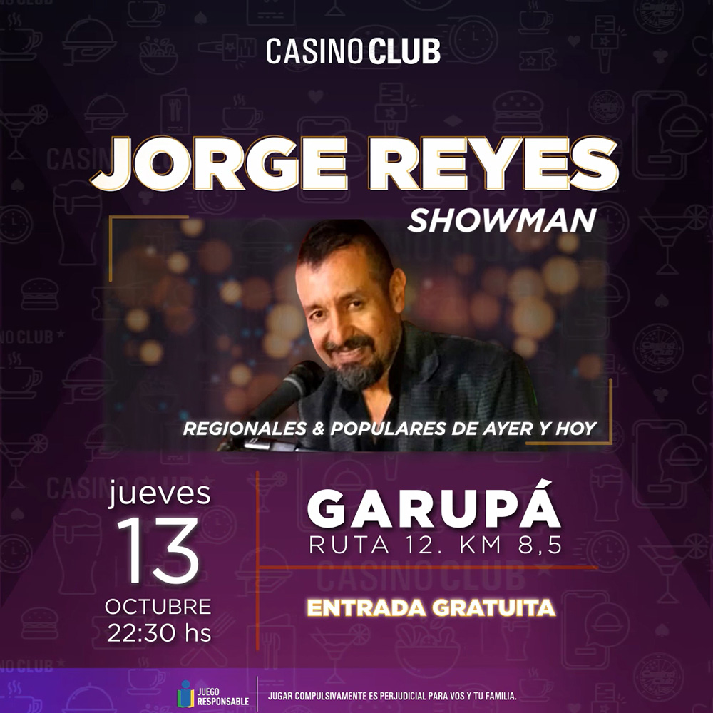 Casino Club Garupá – Jueves 13 desde las 22.30 – Jorge Reyes Showman