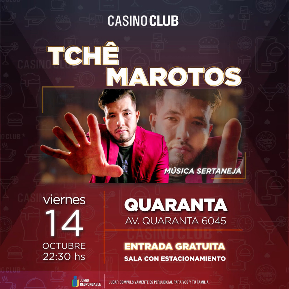 Casino Club Quaranta – Viernes 14 desde las 22.30 – Tchê Marotos